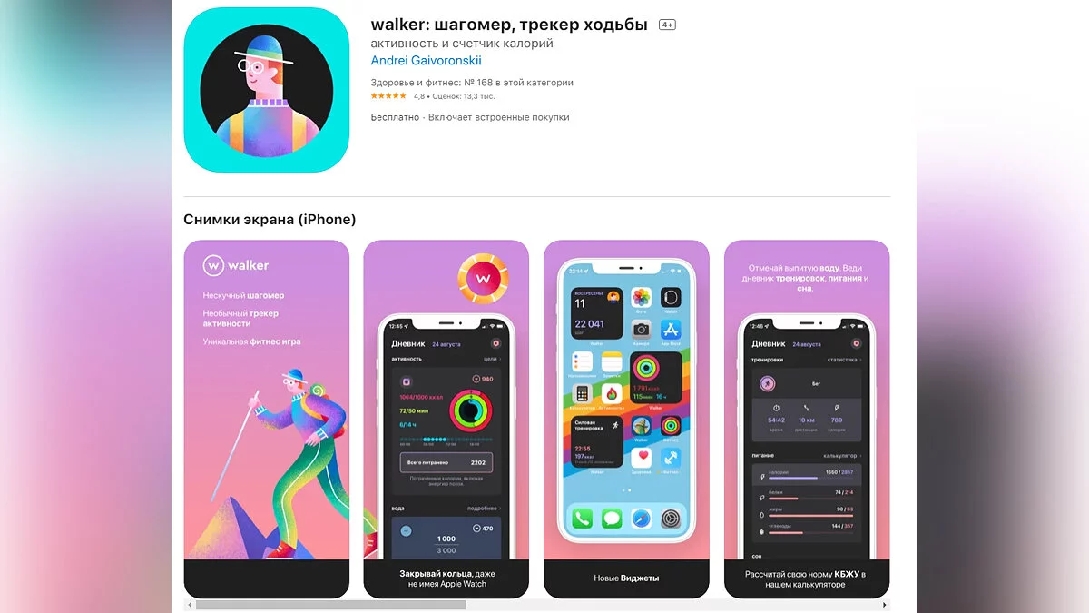 - Walker — шагомер с трекером активности и интерактивными фитнес-задачами (загрузить бесплатно);