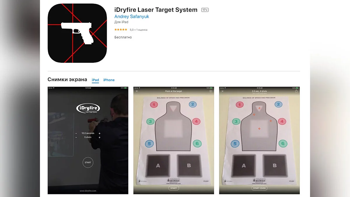 - iDryfire Laser Target System — приложение, которое позволяет регистрировать попадания в мишень при использовании лазерной указки или другого устройства с подобной технологией (загрузить бесплатно);