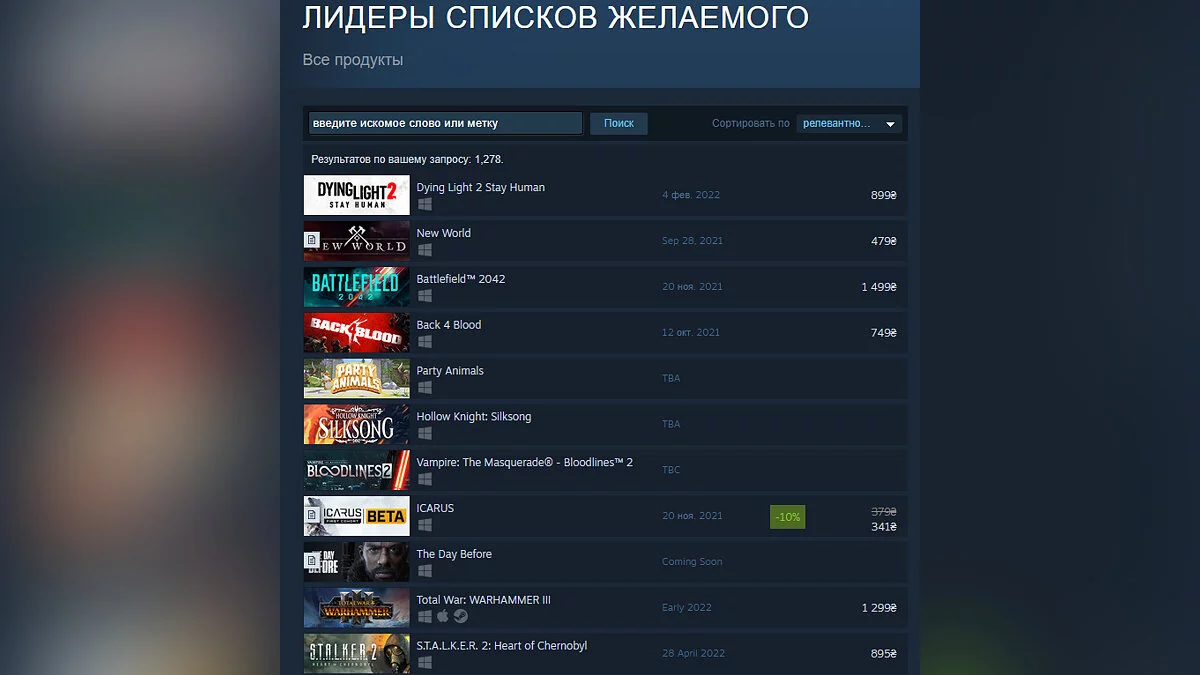 На момент написания новости Icarus входит в ТОП-10 самых ожидаемых игр в Steam.