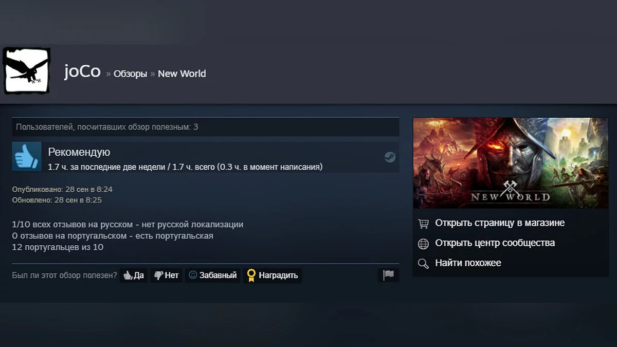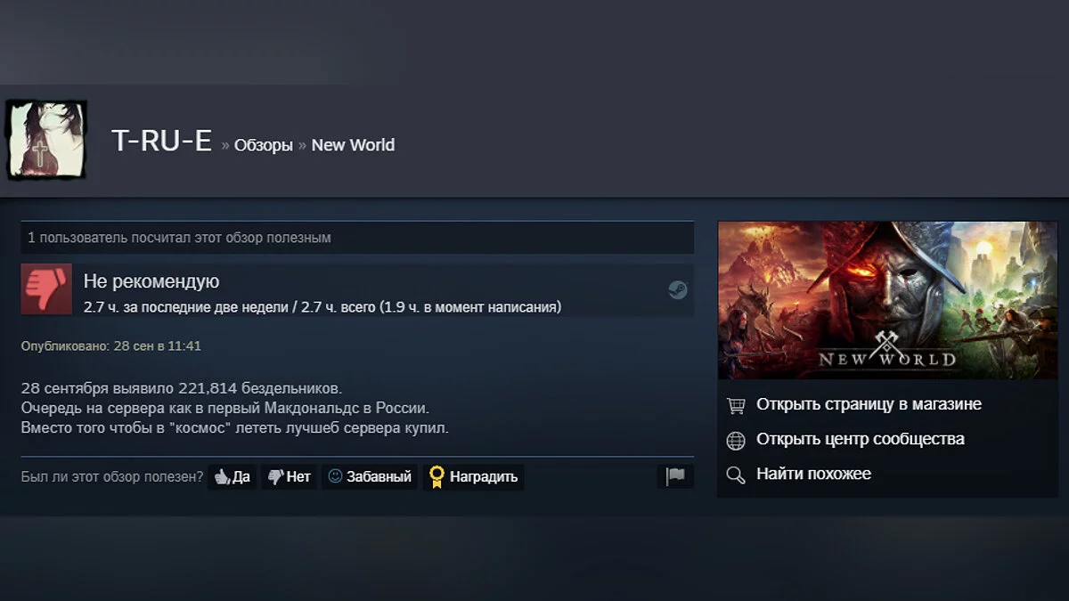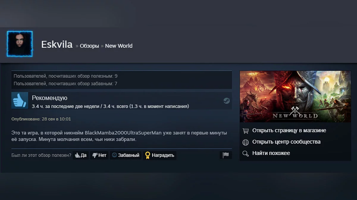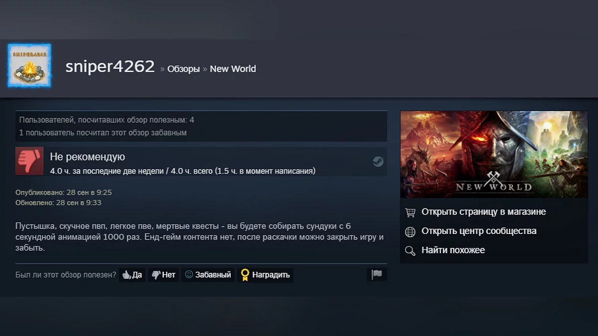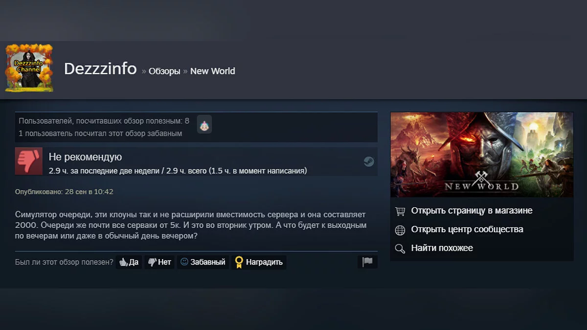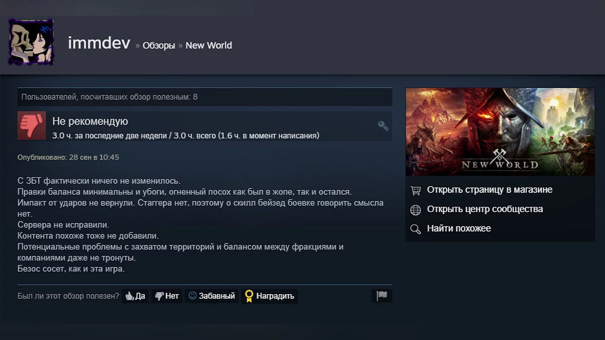 Сегодня в Steam выходит масштабная MMORPG под названием New World, созданная компанией Amazon Games. В сети уже появились первые отзывы от геймеров.