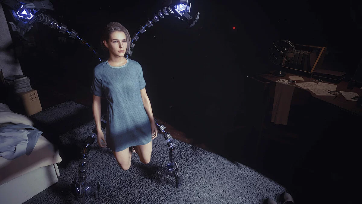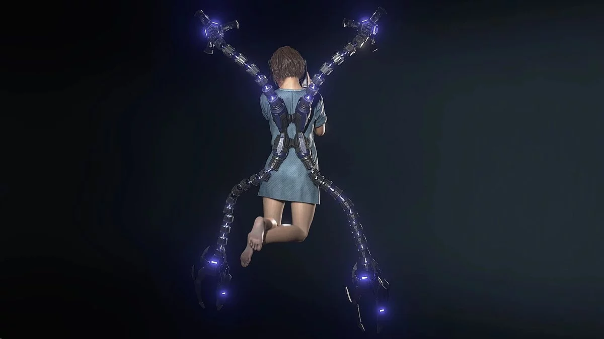 На скриншотах можно увидеть, как к телу Джилл прикреплены механические щупальца. Примечательно, что они полностью анимированы, в результате чего героиня может передвигаться с их помощью.