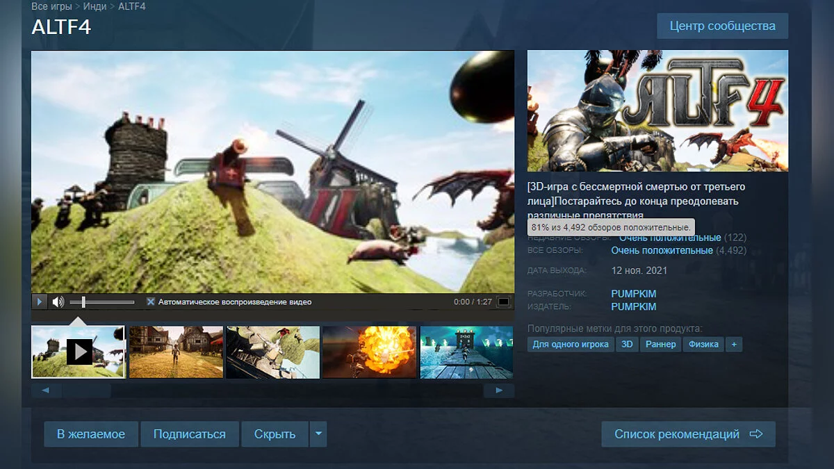 Купить ALTF4 в Steam можно всего за 82 рубля.