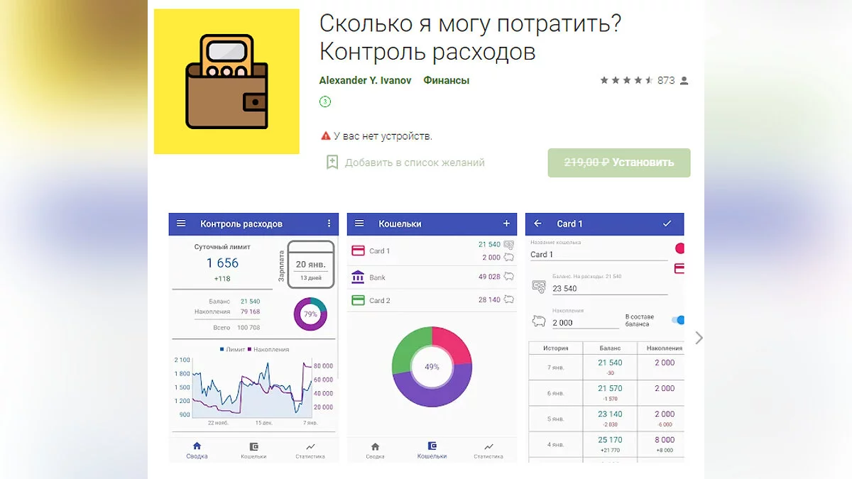 - «Сколько я могу потратить? Контроль расходов» — приложение, позволяющее контролировать расходы и проанализировать, сколько средств можно потратить в рамках того или иного бюджета (загрузить бесплатно);