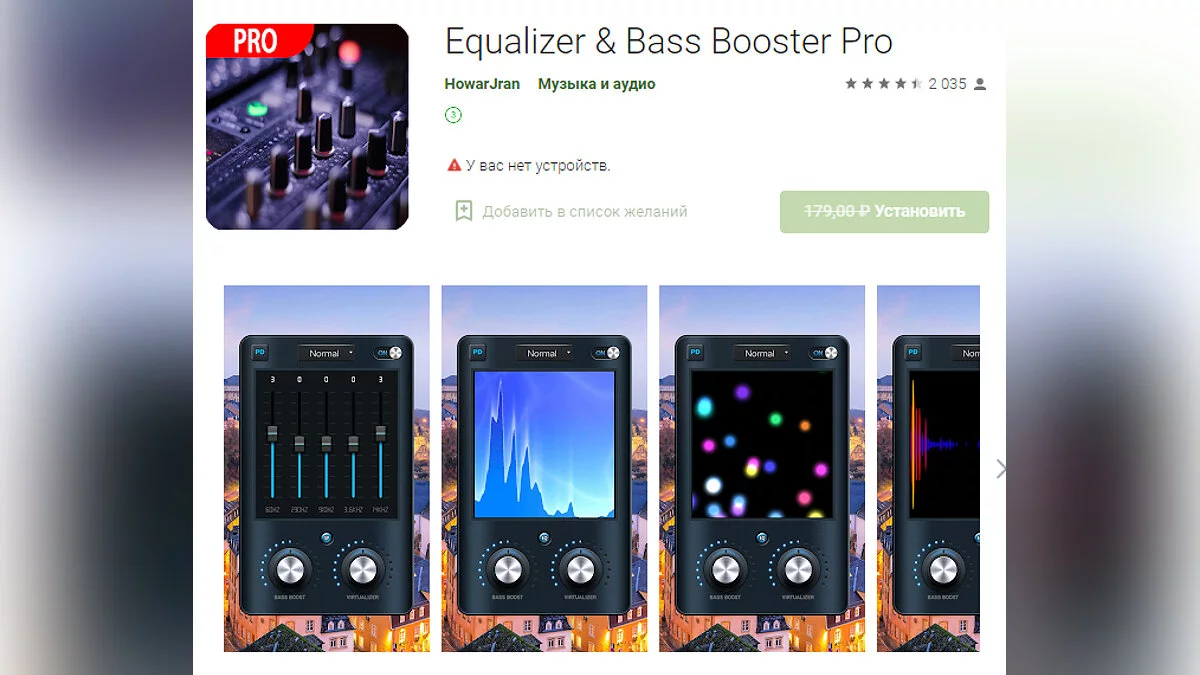 - Equalizer & Bass Booster Pro — сторонний эквалайзер со встроенным усилителем низких частот (загрузить бесплатно);