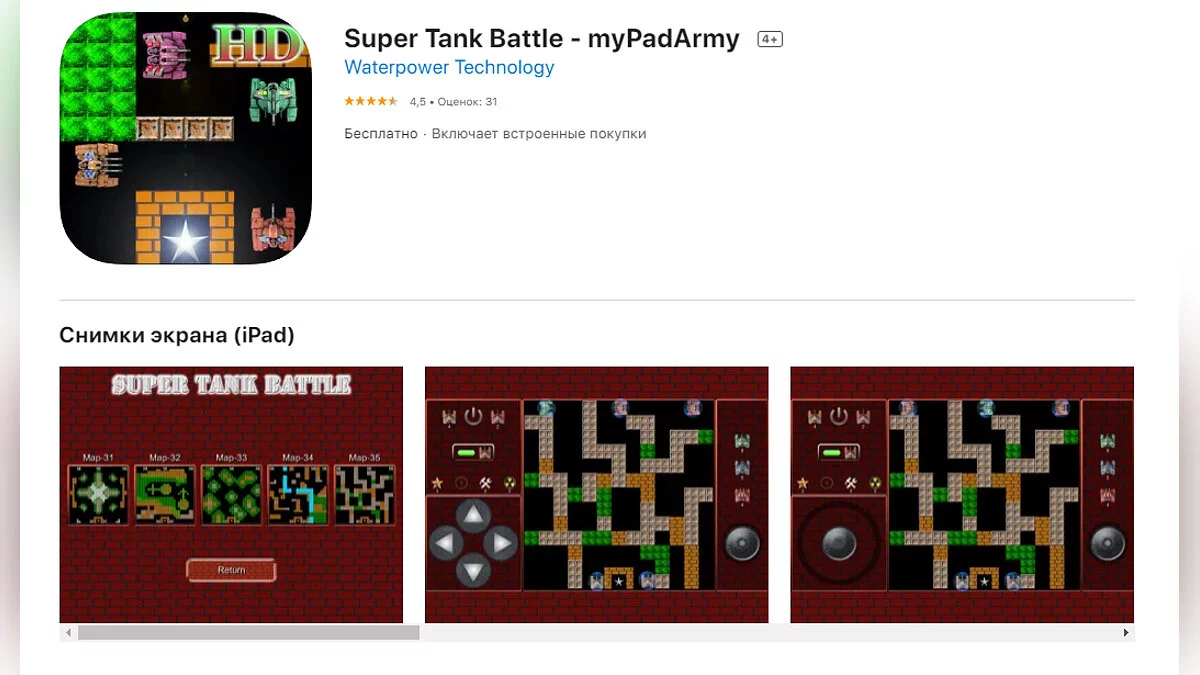 - Super Tank Battle — myPadArmy — танковый экшен в духе классической игры для NES. Версия для iPad (загрузить бесплатно);