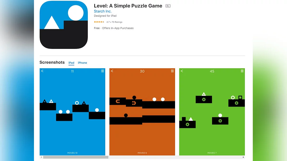 - Level: A Simple Puzzle — минималистичная головоломка, в которой нужно выравнивать платформы (загрузить бесплатно).