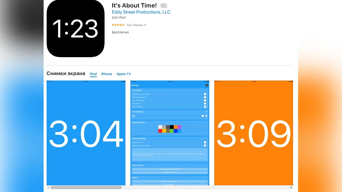 - It's About Time — альтернативные часы с простым интерфейсом и возможностью кастомизации (загрузить бесплатно);