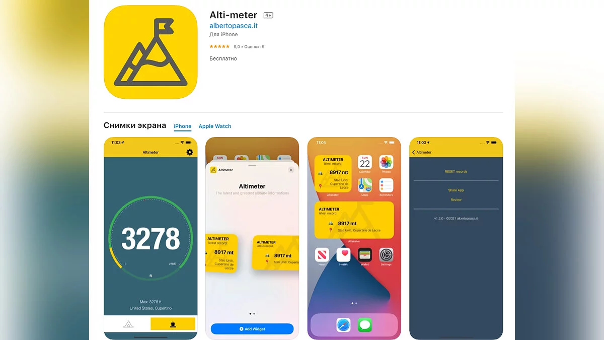 - Alti-meter — цифровой высометр (загрузить бесплатно).