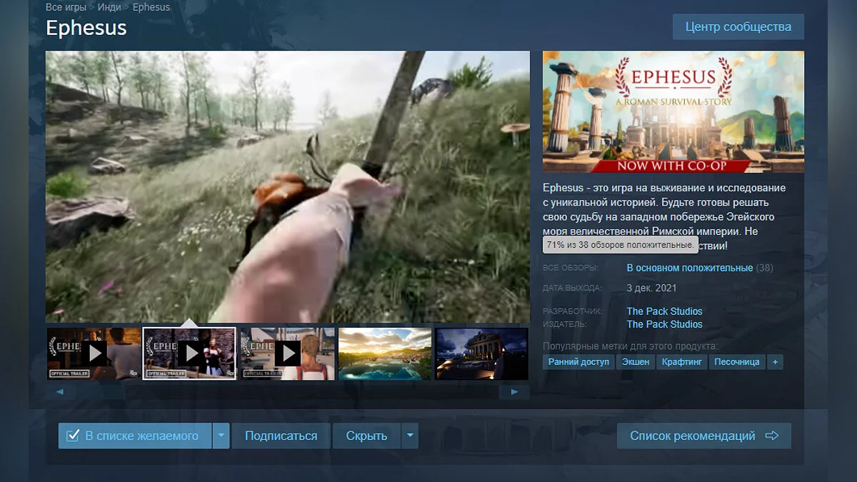 Купить Ephesus можно в Steam за 227 рублей с учетом скидки 24%, которая действует до 10 декабря. В будущем игру планируют выпустить на PlayStation и Xbox.