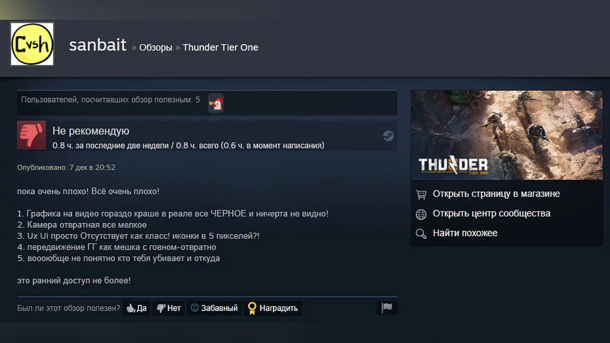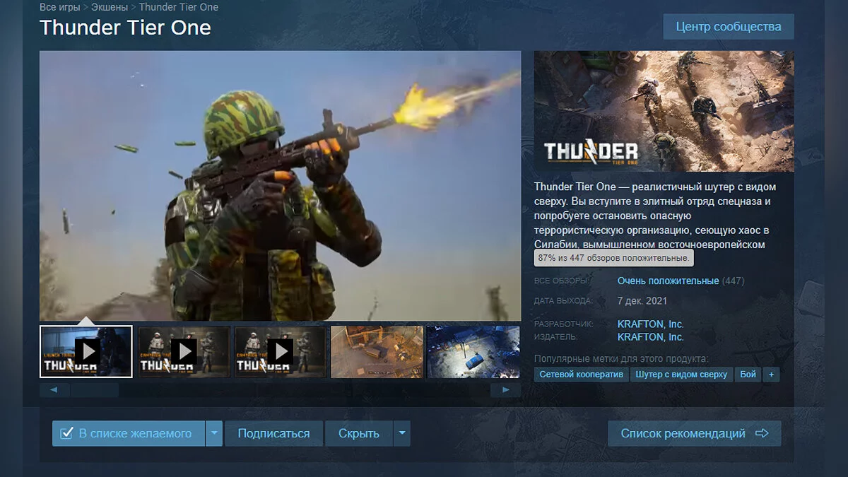 Вчера в Steam вышел реалистичный шутер с видом сверху под названием Thunder Tier One, который был разработан студией Krafton, состоящей из сотрудников PUBG Studio, Striking Distance Studios, Bluehole Studio и RisingWings. За сутки игра получила очень положительные отзывы от геймеров.
