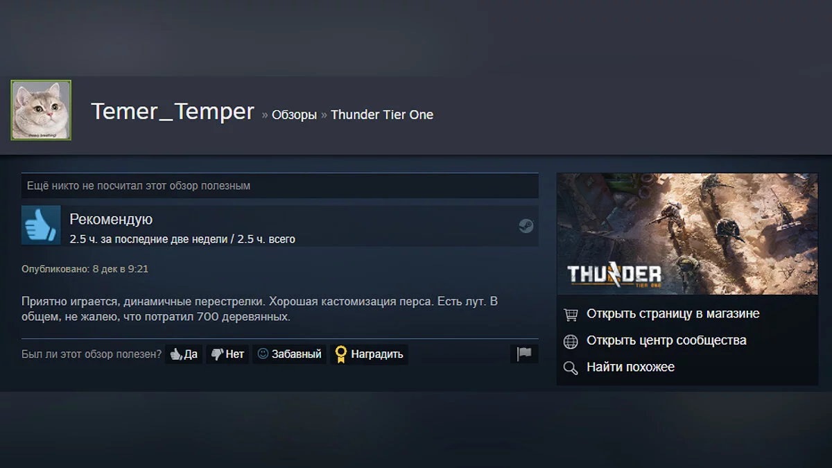 На момент написания новости рейтинг Thunder Tier One составляет 87%.