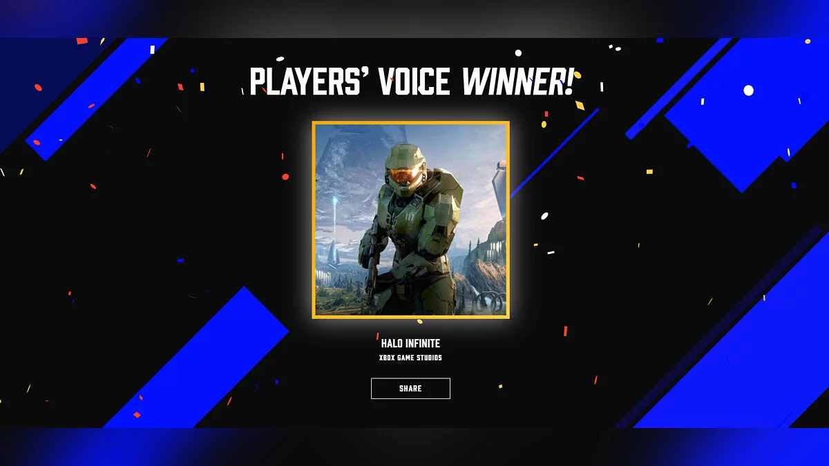 В рамках номинации Players' Voice на церемонии The Game Awards 2021 геймеры выбрали (в онлайн-голосовании) лучшую игру этого года. Ей стал научно-фантастический шутер Halo Infinite, разработанный студией 343 Industries.
