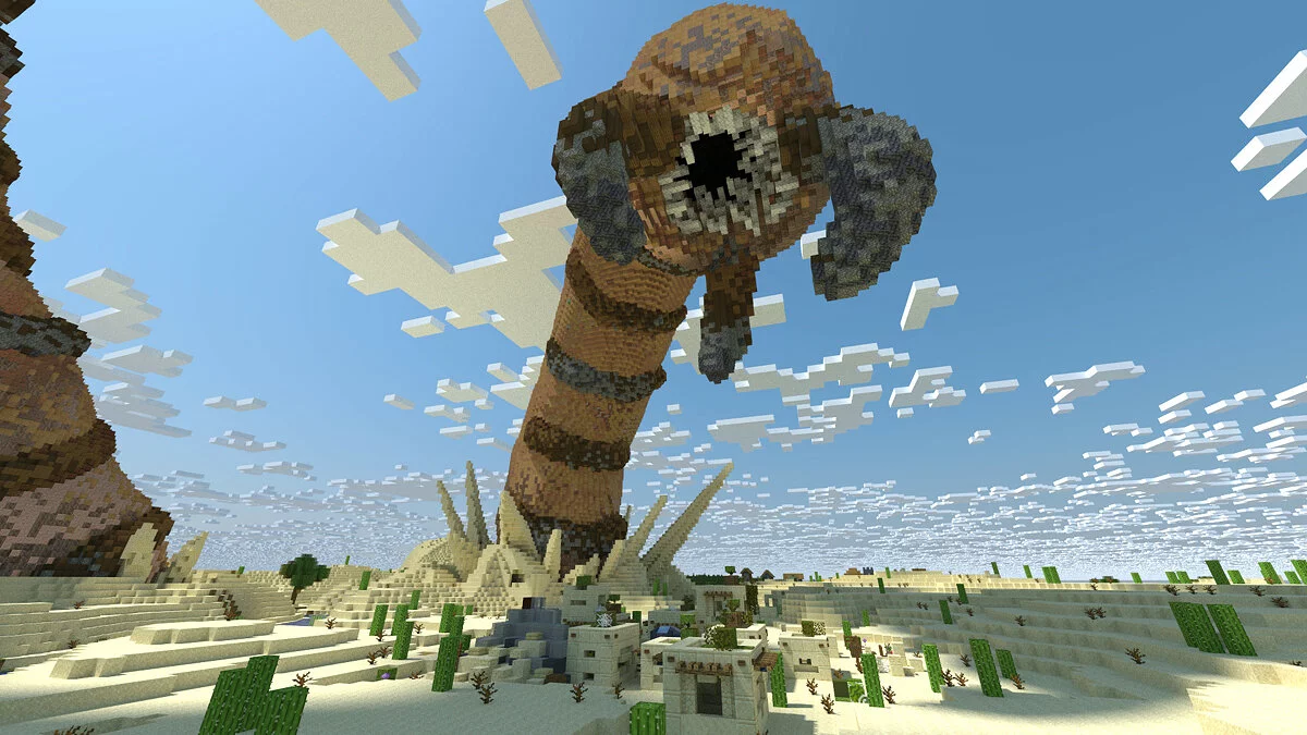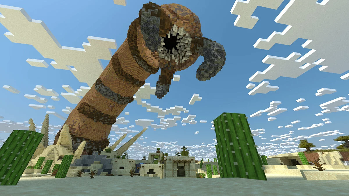 Геймер создал в Minecraft огромного пустынного червя размером с многоэтажное здание и показал скриншоты