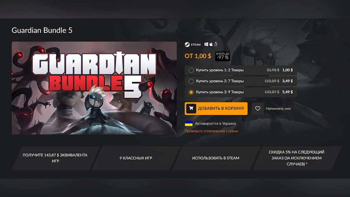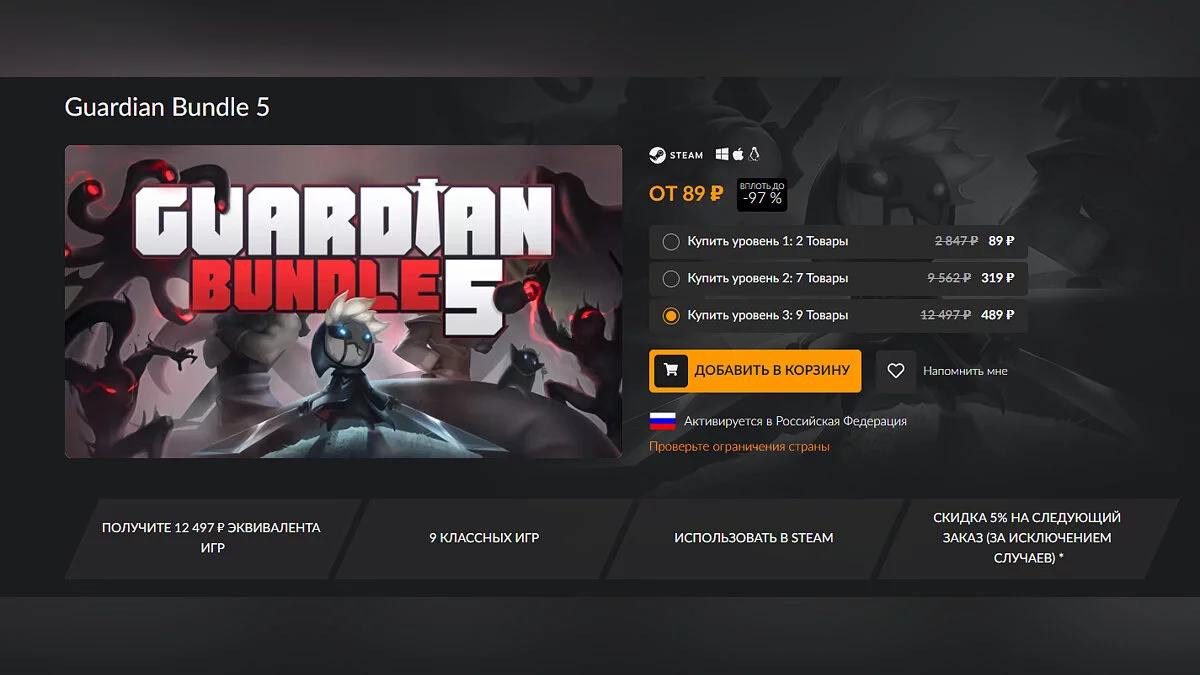 В магазине Fanatical распродают бандл из девяти игр со скидкой 97%. Геймеры могут приобрести его за $5,49 (или 489 рублей для российских пользователей).