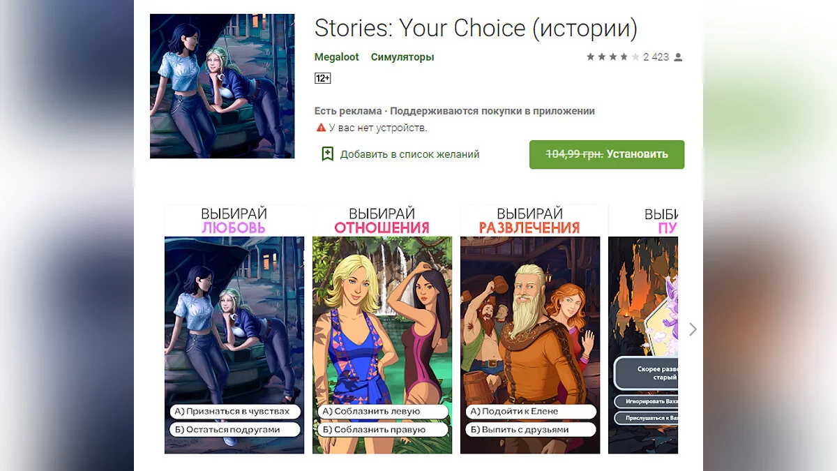 - Stories: Your Choice — набор интерактивных историй (загрузить бесплатно).