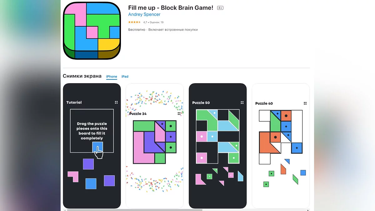 - Fill me up — Block Brain Game! — головоломка, в которой нужно правильно расставлять фигуры (загрузить бесплатно);