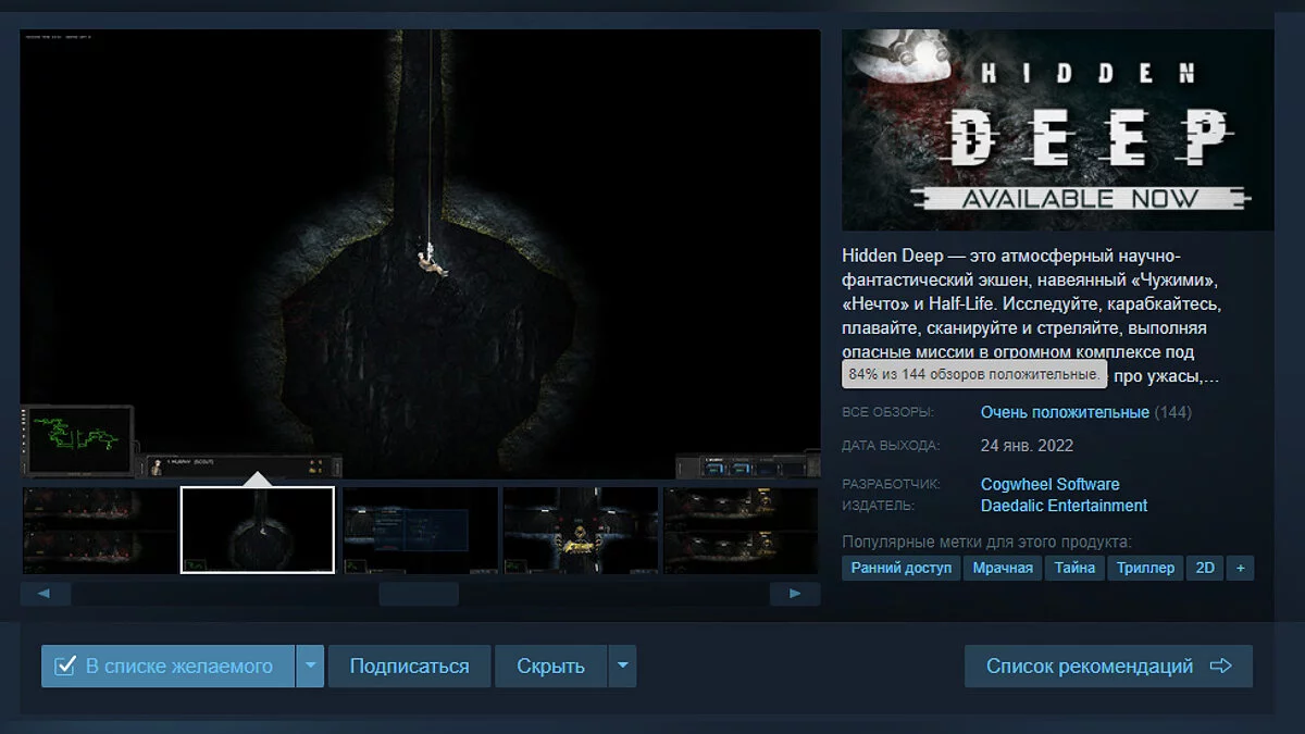 Купить Hidden Deep можно в Steam за 539 рублей с учетом скидки 10% (действует до 31 января).