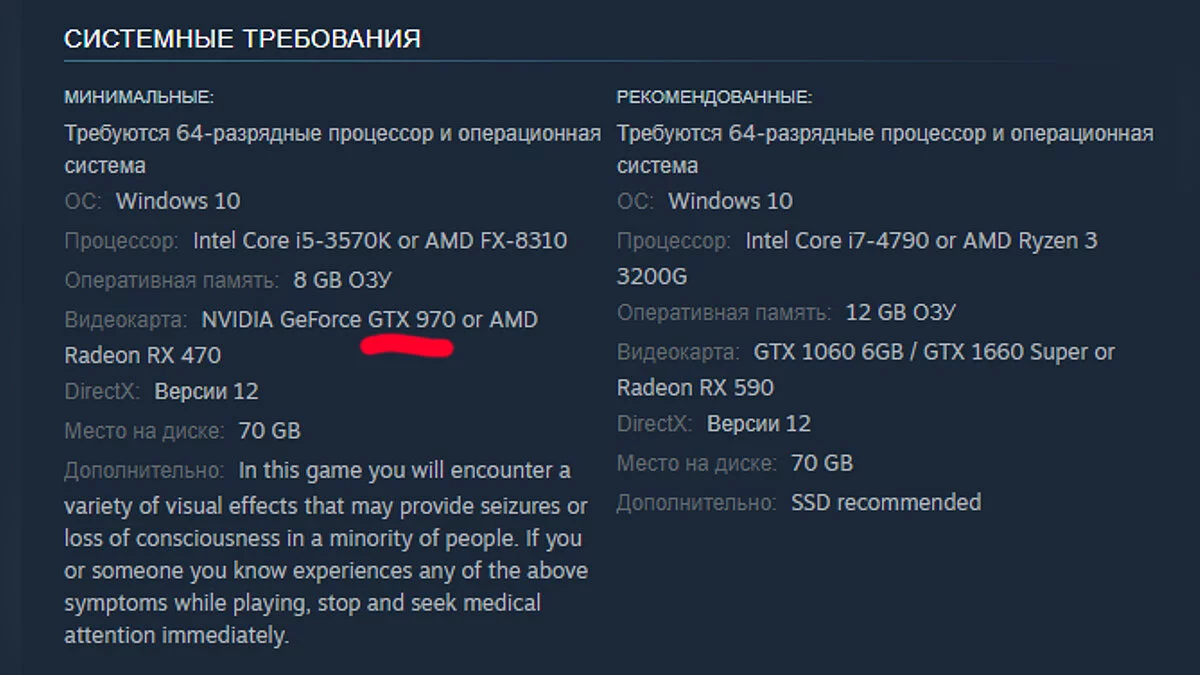 Речь идет о видеокартах. Теперь для игры требуется как минимум NVIDIA GeForce GTX 970. Раньше в минимальных системных требованиях значилась NVIDIA GeForce GTX 780.