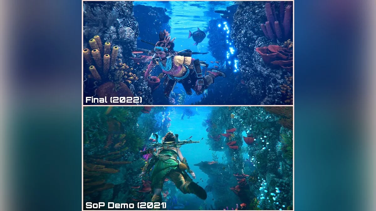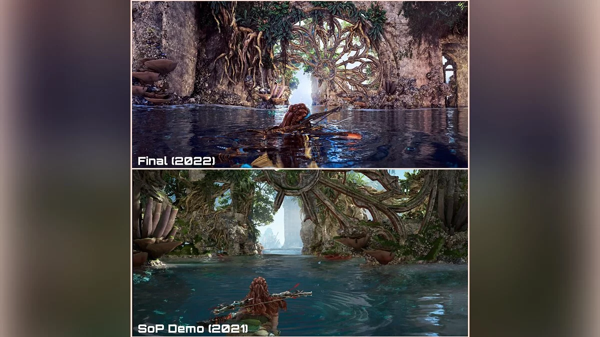 В сети появились сравнительные скриншоты, на которых показано, как Guerrilla Games удалось улучшить графику в Horizon Forbidden West после демонстрации игры на State of Play в 2021 году.