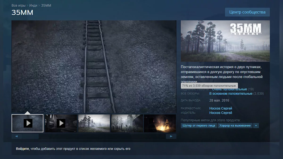 Стоит заметить, что на PC 35MM вышла еще в 2016 году. В Steam у нее 71% положительных отзывов на момент написания новости.