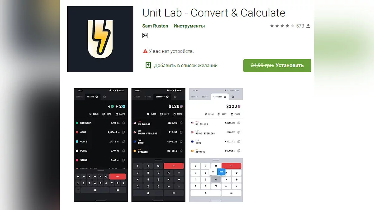 - Unit Lab — Convert & Calculate — конвертер разных единиц измерения и валют (загрузить бесплатно);
