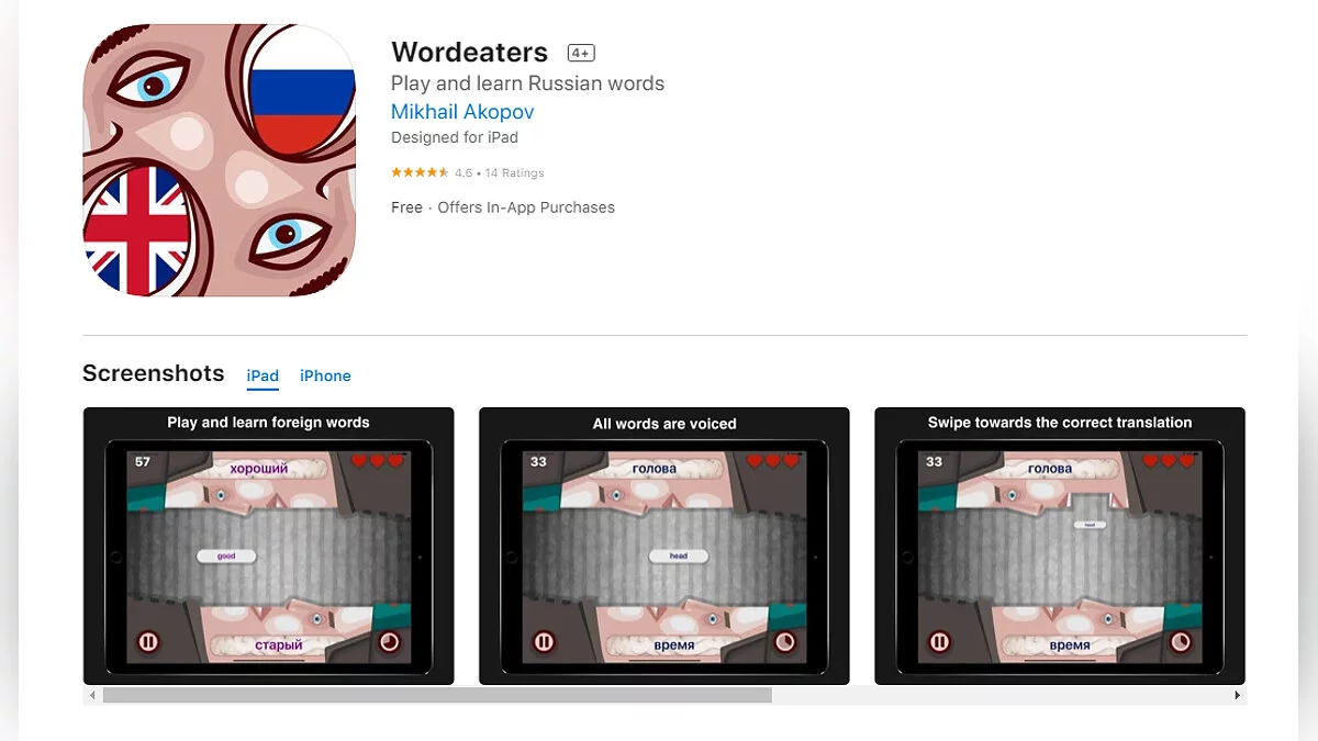 - Wordeaters — занимательная игра, которая поможет выучить английский язык (загрузить бесплатно).