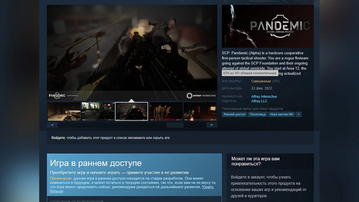 Купить SCP: Pandemic можно в Steam за 391 рубль с учетом скидки 10% (действует до 1 марта). Подробнее о вселенной Фонда SCP можно узнать на специальном вики-сайте.