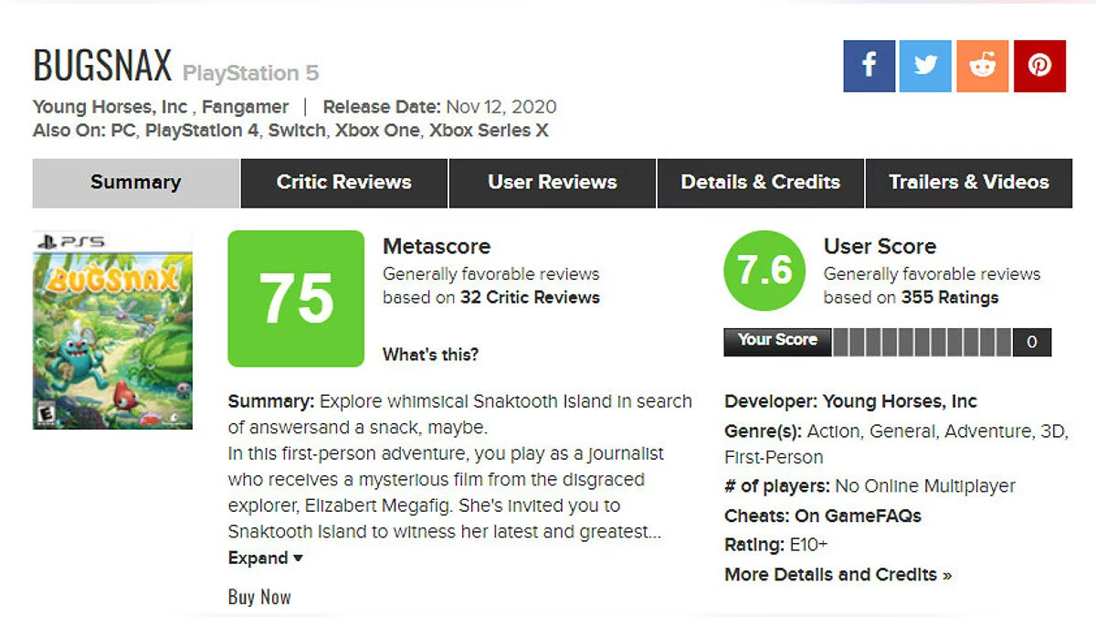 Напомним, что на PS4 и PS5 Bugsnax вышла в ноябре 2020 года. Игру можно было получить бесплатно в PS Plus.