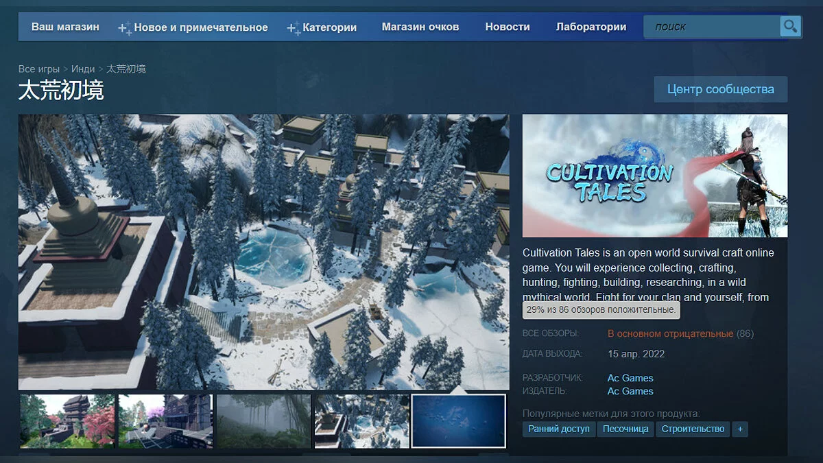 Купить Cultivation Tales в Steam можно за 701 рубль с учетом скидки 10% (действует до 21 апреля). На текущий момент игра локализована только на китайский и английский языки.
