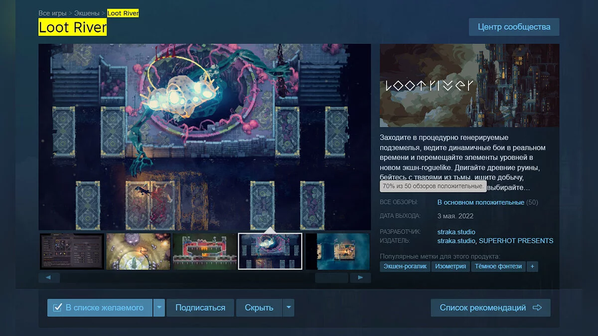 Купить Loot River в Steam можно за 549 рублей с учетом скидки 10% (актуально до 10 мая). А еще игра вышла на Xbox One и Xbox Series X/S. Она также появилась в Xbox Game Pass.