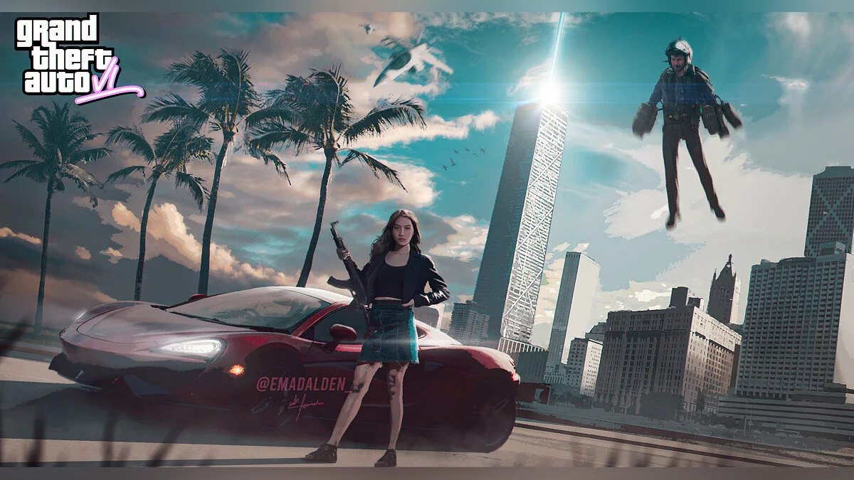 Девушка с автоматом и мужчина с реактивным ранцем — инсайдер перерисовал увиденный им концепт GTA 6