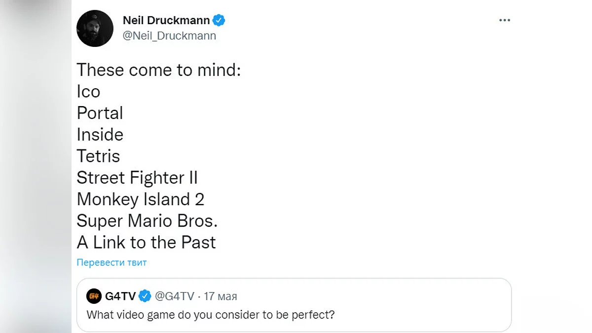 Творческий директор и со-президент компании Naughty Dog Нил Дракманн (Neil Druckmann) недавно, отвечая на вопрос в социальных сетях, внезапно назвал список «идеальных», по его мнению, игр. Стоит заметить, что в него не попали ни The Last of Us, ни The Witcher 3: Wild Hunt, ни Skyrim, ни GTA 5.