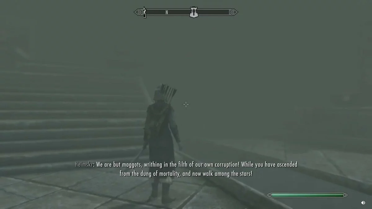 Игрок спокойно бегал по улицам Вайтрана, но после того, как он спрыгнул вниз, гамма игры вдруг сильно изменилась, из-за чего окружение стало выглядеть так, будто вокруг очень густой туман.