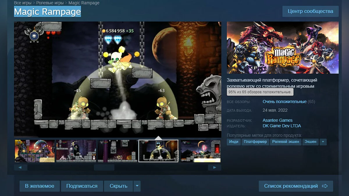 Из раннего доступа Steam вышел экшен-платформер с элементами RPG под названием Magic Rampage, у которого на момент написания новости 95% положительных отзывов. Кроме того, в честь релиза игра стала полностью бесплатной (раньше она продавалась за 259 руб).