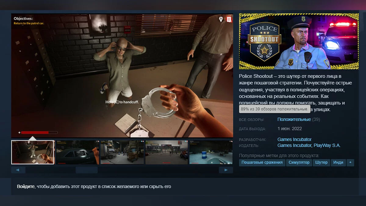 В Steam состоялся релиз полной версии симулятора полицейского от первого лица под названием Police Shootout, который буквально за первые сутки получил очень положительные отзывы от геймеров.
