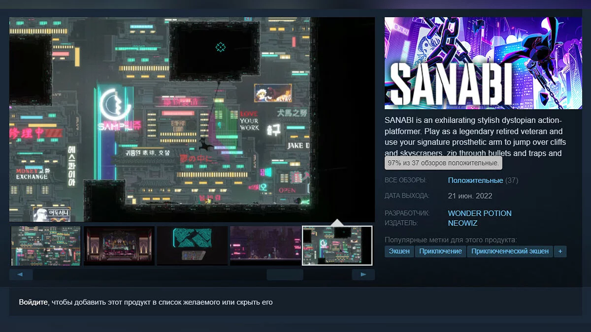 Купить SANABI можно в Steam за 324 рубля с учетом скидки 10% (будет действовать до 7 июля).