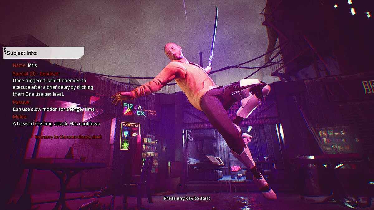 «Убейте или умрите. Проходите боевые эпизоды и учитесь на своём опыте, шаг за шагом раскрывая секреты напряжённой динамичной истории, действие которой разворачивается в мрачной киберпанковской антиутопии», — говорится в описании проекта.