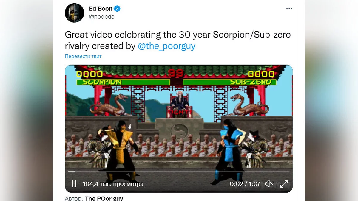 Эд Бун показал, как изменилась Mortal Kombat за 30 лет на примере боя Скорпиона против Саб-Зиро