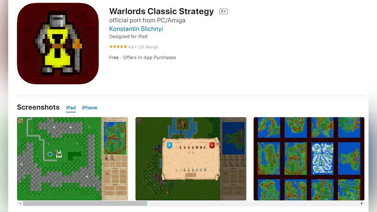 - Warlords Classic Strategy — порт культовой средневековой стратегии 1989 года (загрузить бесплатно).