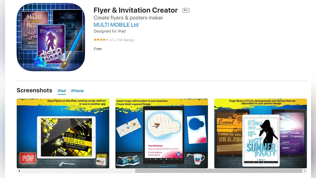 - Flyer & Invitation Creator — приложение с набором флаеров, открыток и приглашений с красивым дизайном (загрузить бесплатно);