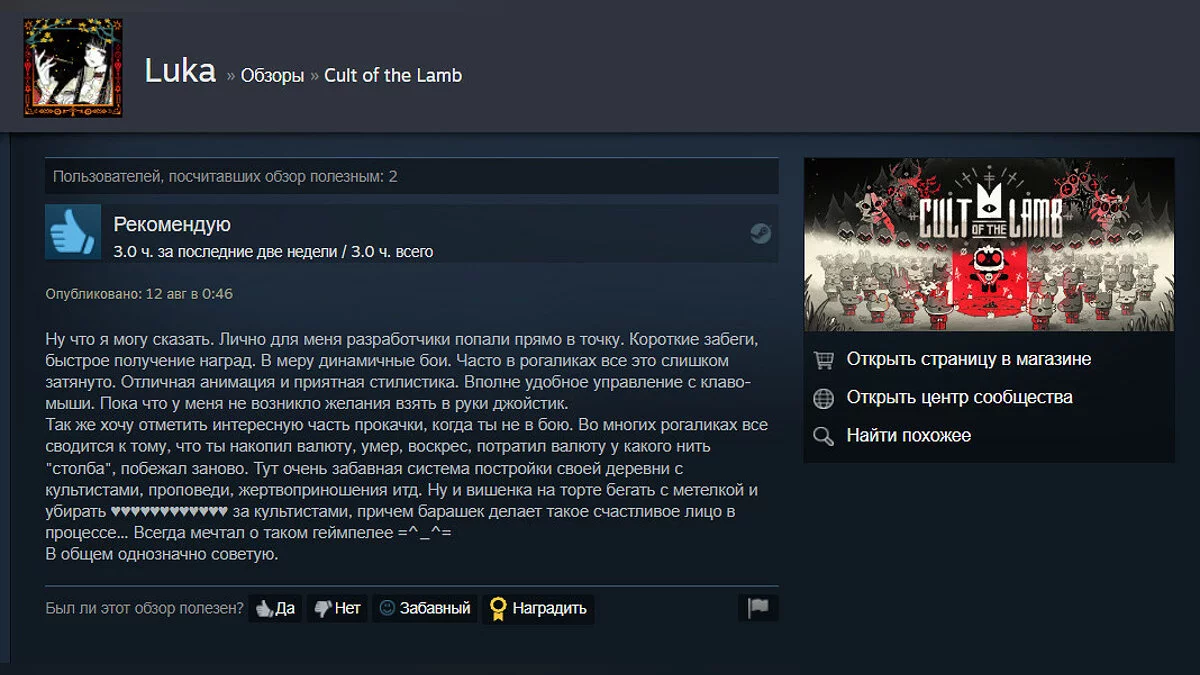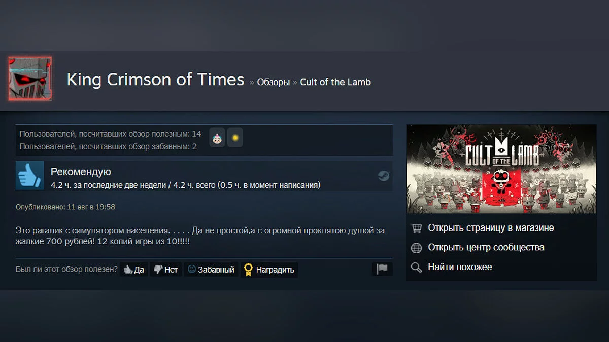 «Всегда мечтал о таком геймплее» и «Понравилось всё» — Cult of the Lamb взорвала Steam и собрала море положительных отзывов