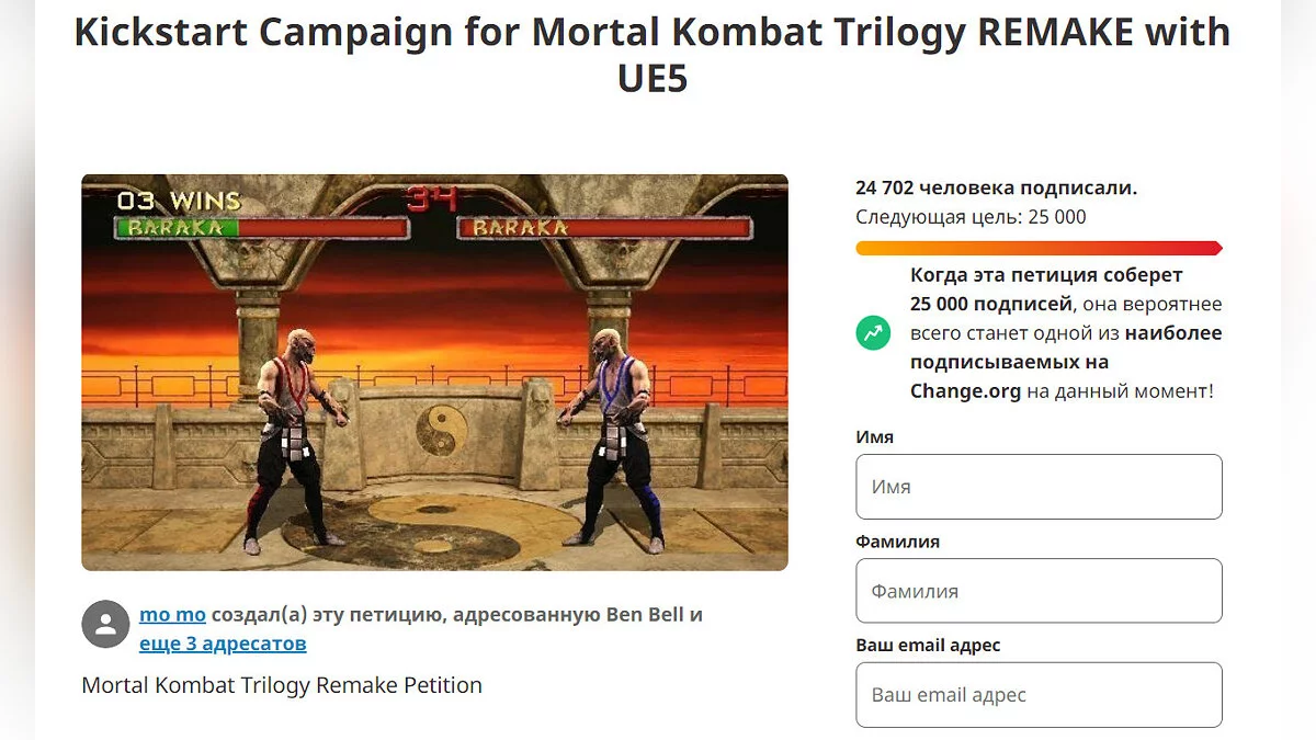 Поддержать проект можно на Patreon. Кстати, на сайте Change.org продолжает собирать подписи петиция, в которой Eyeballistic Games просит компанию Warner Bros. владеющую правами на бренд Mortal Kombat, не запрещать дальнейшую разработку.