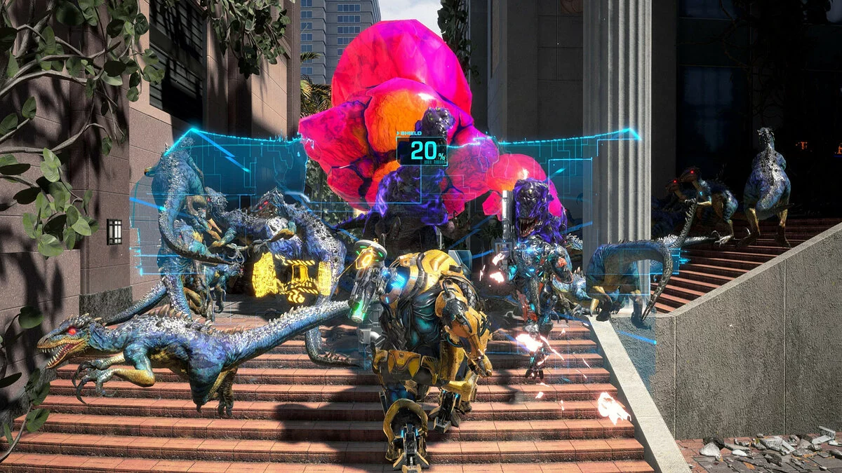 В новом геймплее шутера Exoprimal показали сражение с сотней динозавров -