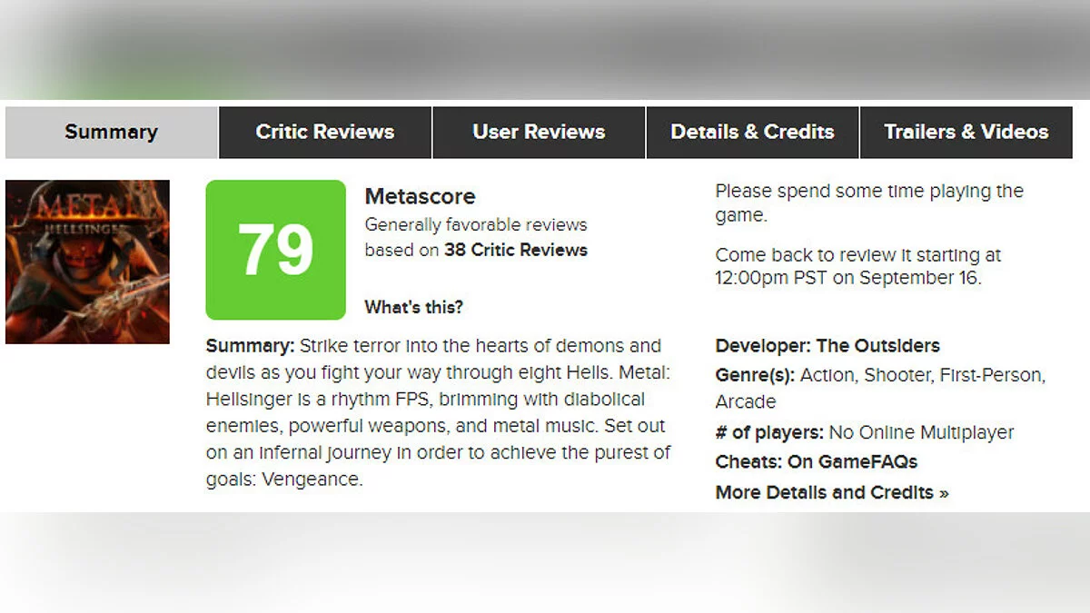 Сегодня (15 сентября) на PC и консолях вышел новый шутер от первого лица под названием Metal: Hellsinger. В первые же часы проект получил очень положительные отзывы от геймеров в Steam. На момент написания новости его рейтинг составляет 99%.