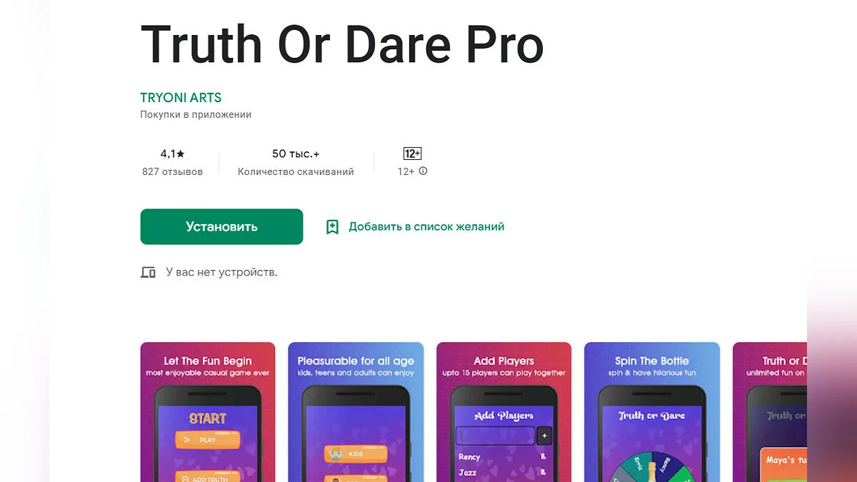 - Truth Or Dare Pro — игра-викторина в формате так называемой «Бутылочки» (загрузить бесплатно);