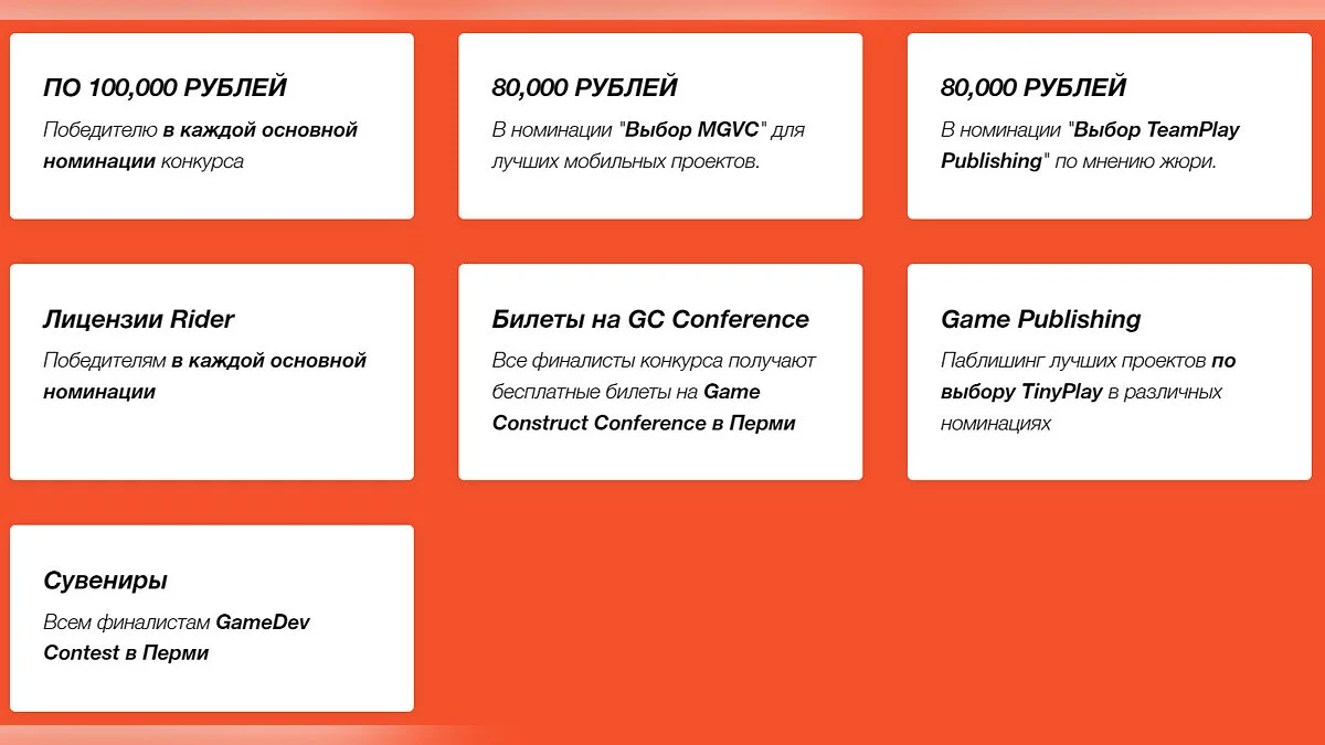 Победители GameDev Contest получили денежные призы (указаны на картинке ниже). Всего в конкурсе приняли участие свыше 60 проектов разных жанров и направленностей, включая игры для мобильных платформ, PC и консолей.