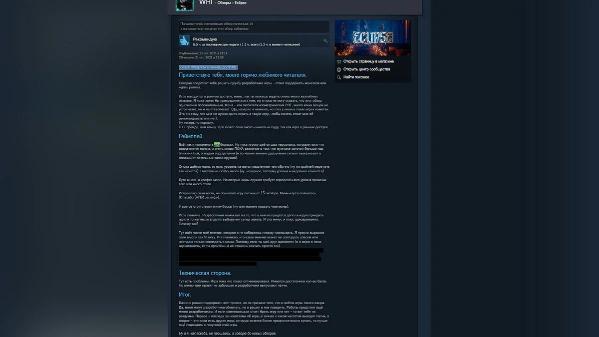 В Steam вышла полная версия изометрического ролевого экшена под названием Eclipse, который около года пробыл в раннем доступе. Проект был создан российским разработчиком MadRock. Сейчас у него 88% положительных отзывов (большинство относятся к ранней версии). Геймеры сравнивают проект с серией Diablo.