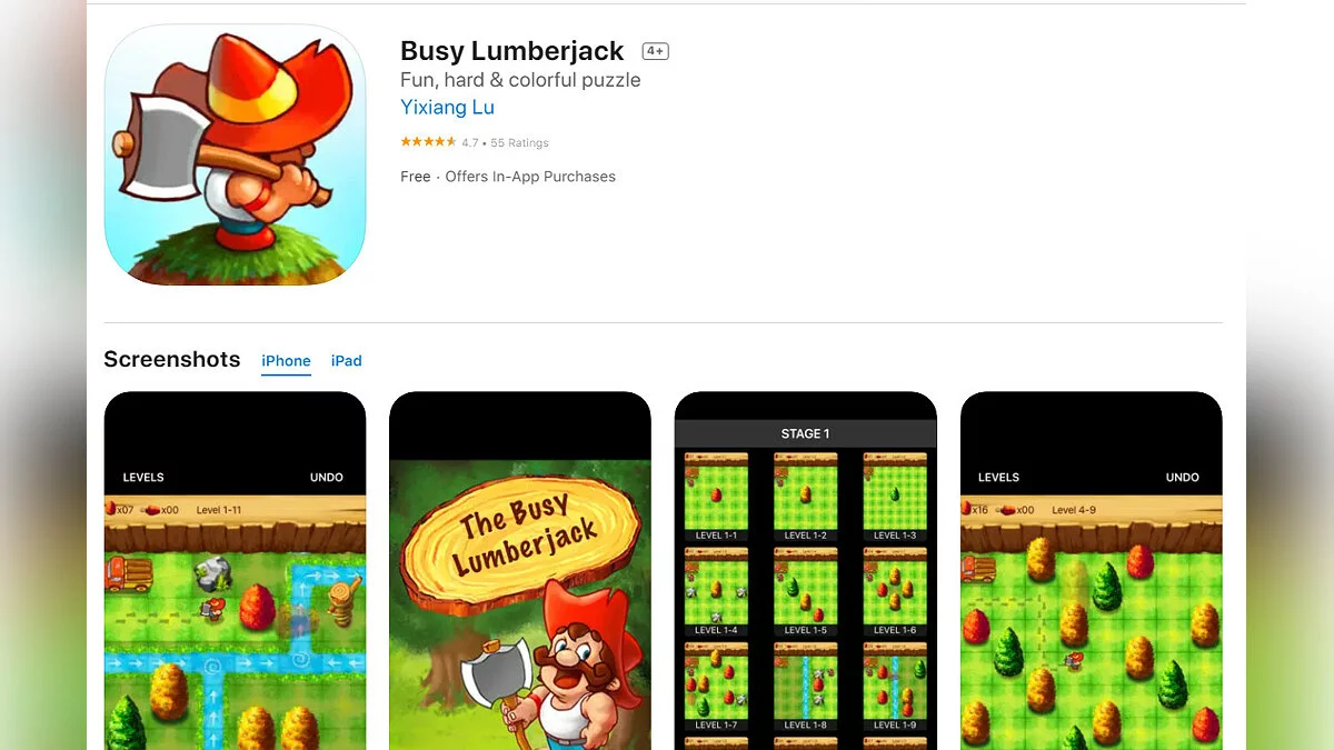 - Busy Lumberjack — веселая и увлекательная головоломка. Цель каждого уровня — помочь дровосеку срубить все деревья и вернуться к своему грузовику (загрузить бесплатно);