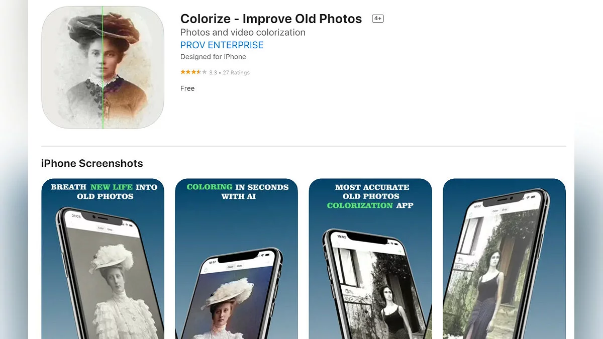 - Colorize — Improve Old Photos — программа, которая помогает осовременить старые фотографии (загрузить бесплатно).