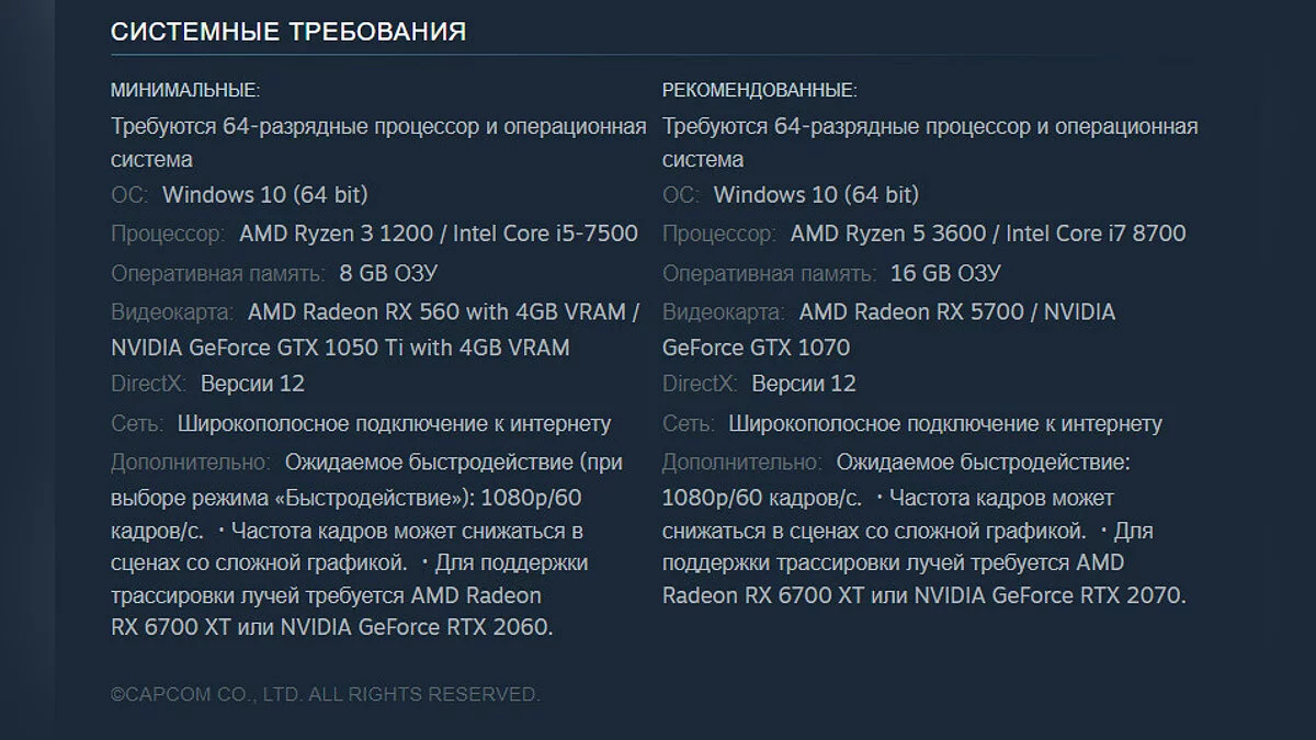 - Дополнительно: ожидаемое быстродействие (при выборе режима «Быстродействие»): 1080p/60 FPS. Частота кадров может снижаться в сценах со сложной графикой. Для поддержки трассировки лучей требуется AMD Radeon RX 6700 XT или NVIDIA GeForce RTX 2060.